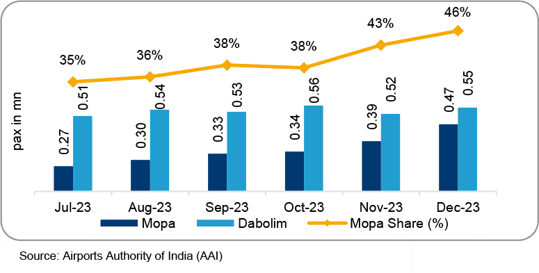 Mopa Airport share in total Goa traffic steadily increasing, reaching 46% in Dec’23