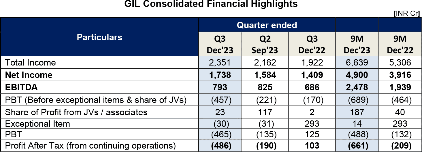 Raised INR 1,950 Crs through a 3-year senior unsecured bonds - used proceeds to refinance existing debt. The gross debt in GAL was INR 4,681 Crs as on 31 Dec’23